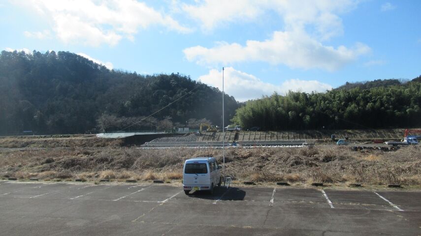 第二駐車場で釣り竿アンテナ上げました。