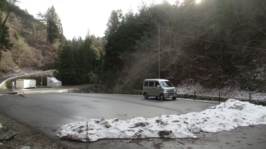 この公園は伊吹山の東斜面の谷底、公園近くまで行くと道路は凍結。