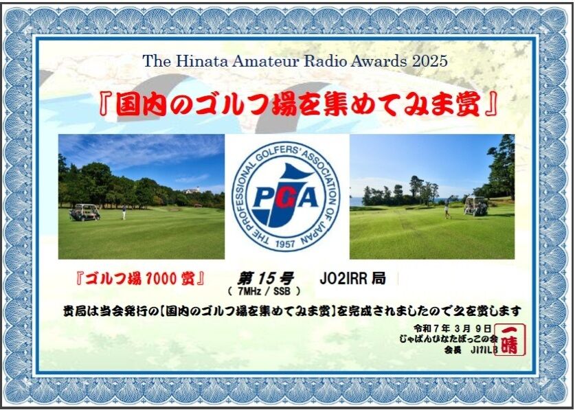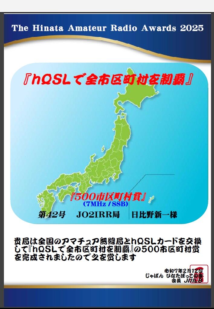 hQSL登録局も多くなり登録局限定のアワードです。