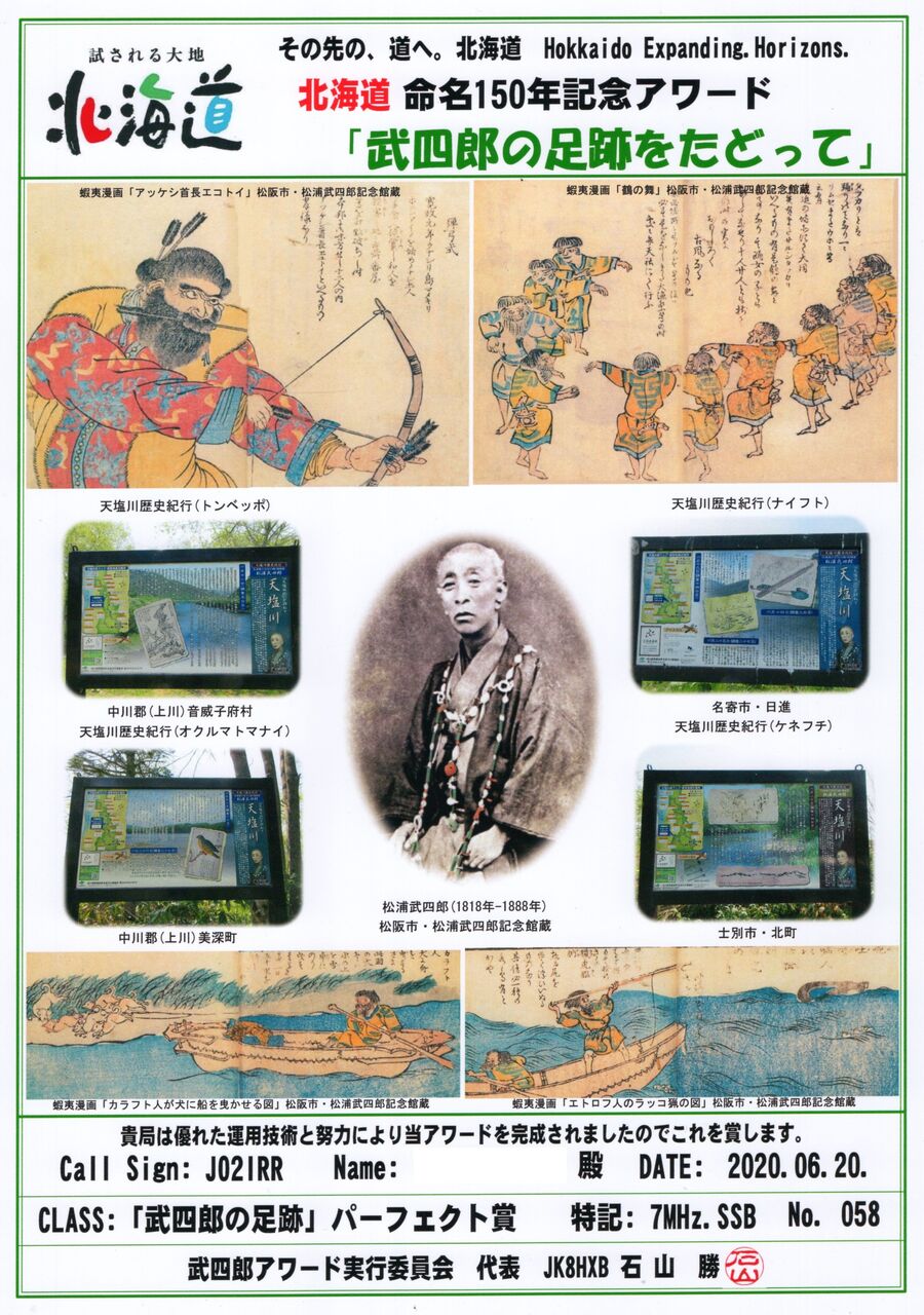 QRV賞 : パーフェクト賞 :14振興局・101市町村・184史跡で3局以上と交信。